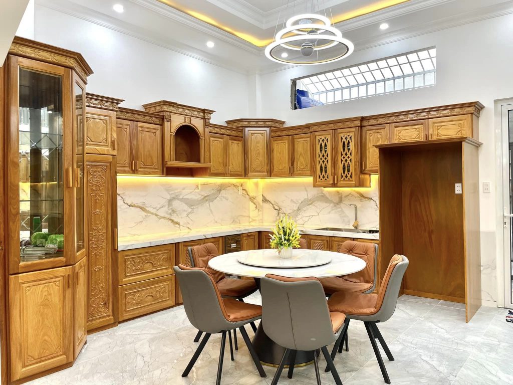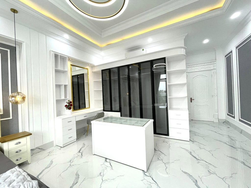➡️ Nhà thiết kế hiện đại, phong cách Tân Cổ Điển sang trọng, đầy đủ nội thất cao cấp gồm: Salon phòng khách, bộ bàn ăn, tủ kệ, tủ áo, bàn trang điểm, đảo trang sức, giường nệm chăn gối. Sofa đọc sách.